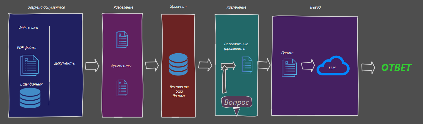 RAG β Π΄ΠΎΠΏΠΎΠ»Π½ΠΈΡΠ΅Π»ΡΠ½ΠΎ ΠΎΠ±ΡΠ°Π±Π°ΡΡΠ²Π°Π΅Ρ Π·Π°ΠΏΡΠΎΡΡ ΠΏΠΎΠ»ΡΠ·ΠΎΠ²Π°ΡΠ΅Π»Π΅ΠΉ, ΠΈΡΠΏΠΎΠ»ΡΠ·ΡΡ ΡΠ΅Π»Π΅Π²Π°Π½ΡΠ½ΡΠ΅ Π²Π½Π΅ΡΠ½ΠΈΠ΅ Π΄Π°Π½Π½ΡΠ΅ Π΄Π»Ρ ΡΠ»ΡΡΡΠ΅Π½ΠΈΡ ΠΎΡΠ²Π΅ΡΠΎΠ² Π±ΠΎΠ»ΡΡΠΈΡ ΡΠ·ΡΠΊΠΎΠ²ΡΡ ΠΌΠΎΠ΄Π΅Π»Π΅ΠΉ (LLM), ΡΠ°ΠΊΠΈΡ ΠΊΠ°ΠΊ GPT-4 ΠΈΠ»ΠΈ Llama.