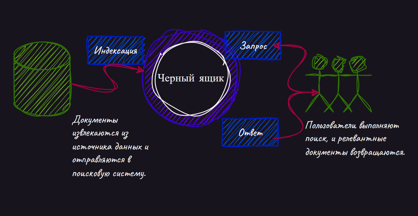 Но создание релевантного поиска требует гораздо больше усилий, чем может показаться на первый взгляд. Новички в разработке поисковых систем воспринимают поиск как чёрный ящик, в который вы добавляете контент и позволяете пользователям опрашивать его.