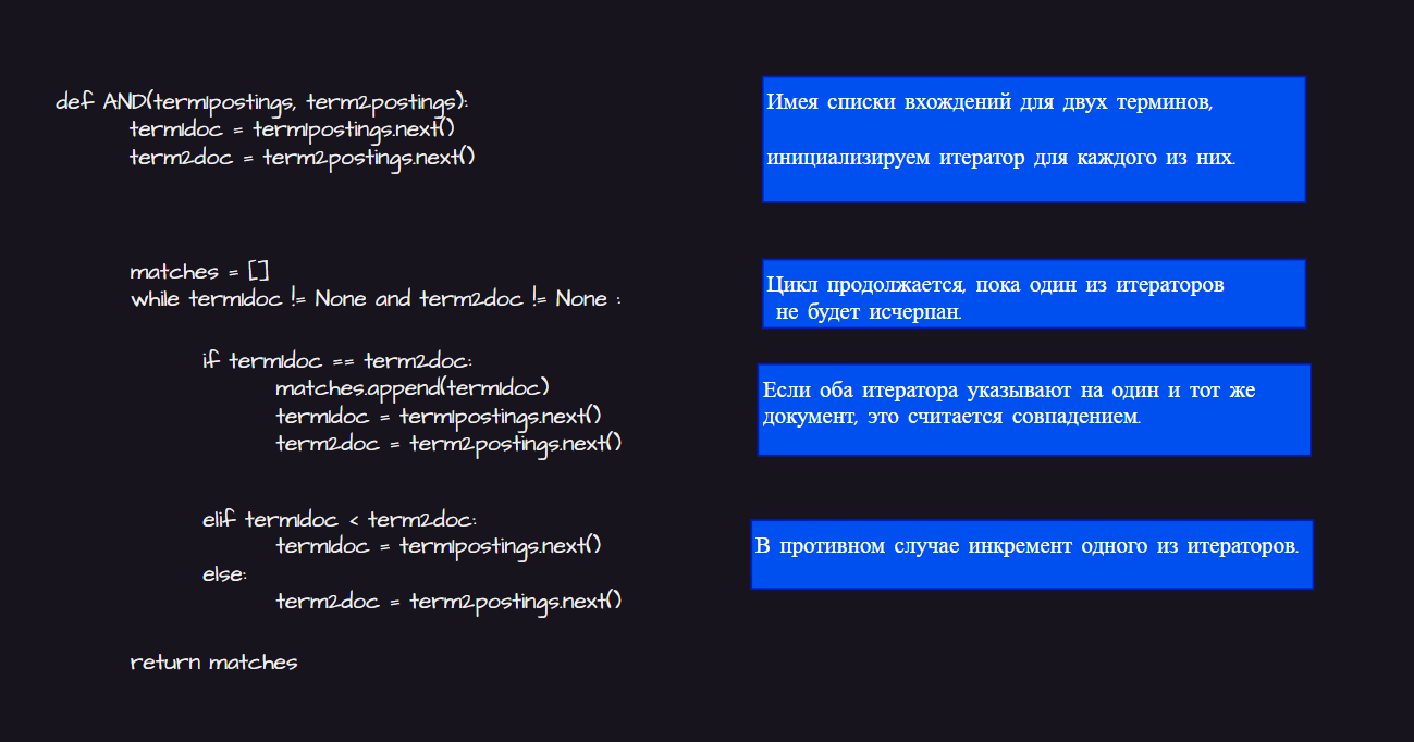 Терминологический словарь и список вхождений — это ключевые элементы структуры данных инвертированного индекса, поскольку именно они позволяют быстро сопоставлять документы с терминами запроса.