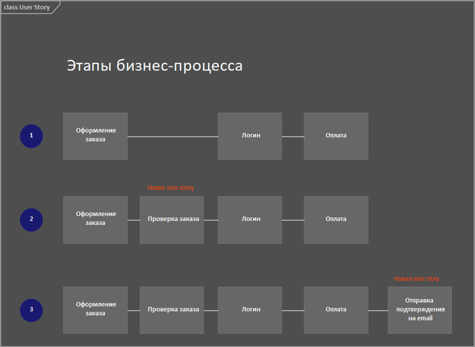 В Agile-проектах цель обычно разбивается на отдельные единицы работы, каждая из которых описывает функциональность или возможность действия с точки зрения конечного пользователя. Эти блоки работы называются user stories (пользовательские истории).